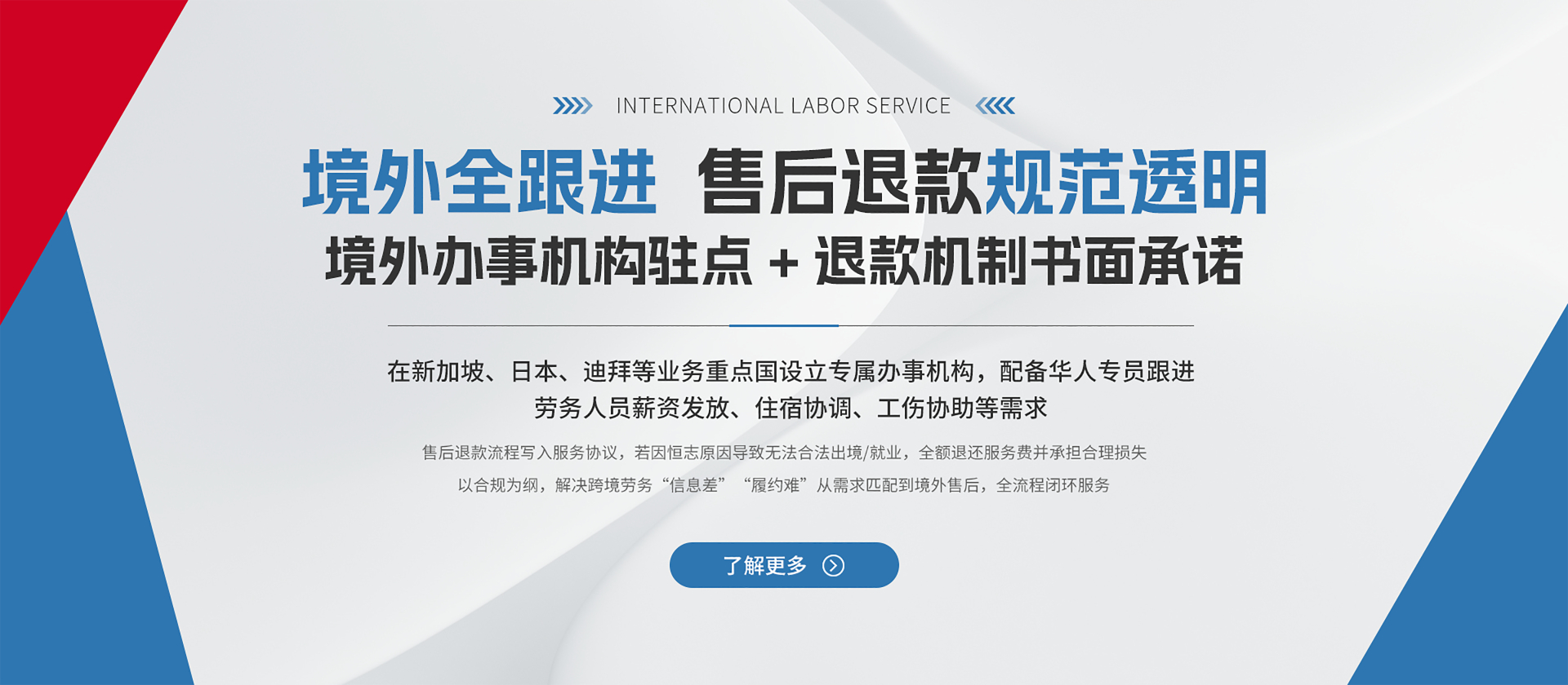 建立“劳务人员权益保障基金”,对工伤、疾病等突发情况提供应急协调服务,填补行业“出境即脱责”漏洞。