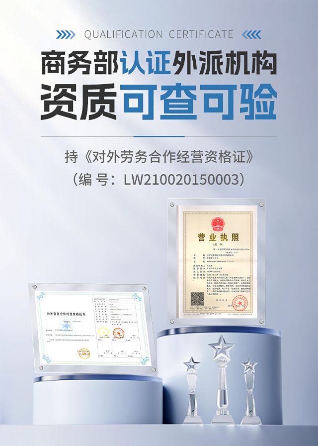 持有对外劳务合作经营许可证,严格遵循中、外两国法律法规开展业务,全流程合规可追溯,从根源上规避外派风险。